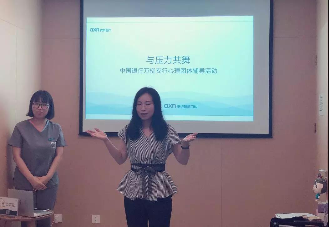 2018年(nián)7月(yuè)23日(rì),安忻睡(shuì)眠北京萬柳門診邀請(qǐng)到(dào)中國(guó)心理(lǐ)幹預協會(huì)婚姻家(₹jiā)庭專業(yè)委員(yuán)會(huì)副秘書(shū)長(cháng)李豔老(lǎo)師(shī),為(wèi)中國(guó)銀(yín)行(xíng)萬柳支行(xíng)員(yuán)工(gōng)進行(xíng)團體(tǐ)心理(lǐ)輔導。