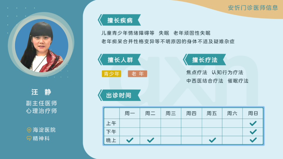 汪靜(jìng)主任目前同時(shí)在北京曆下花園門診部出診,如(rú)果有(yǒu)需要(yào)可(kě)以通(tōng)過微(wēi)信公衆号進行(x íng)線上(shàng)預約咨詢。